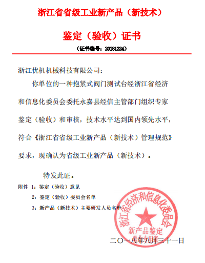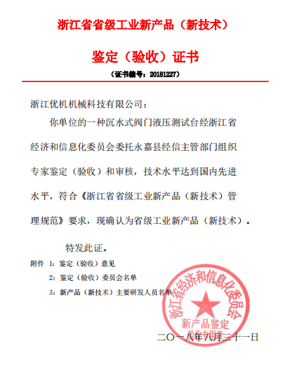 浙江省制造業(yè)首臺(套)產(chǎn)品證書