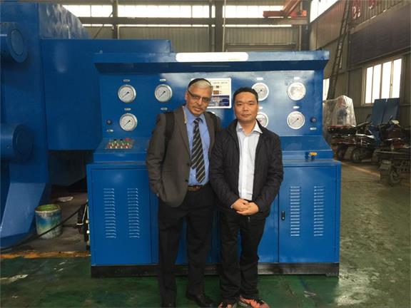 近日,印度(IVC)閥門公司INDIAN VALVE PVT.LTD總裁Mukherjee先生親自來浙江優(yōu)機機械科技有限公司驗收1月份定制的蝶閥、球閥試驗臺,這次訂購的設備是優(yōu)機公司國家專利產品:ZL 2014 2 0194312.6,液壓系統(tǒng)合理節(jié)能,操作人性化設計,是1月份該閥門公司技術部經理Tomy 先生來中國實地考察各大廠家生產工藝及企業(yè)資質后精心篩選確定下來的采購設備,這次采購的設備是代替IVC公司原有老式閥門測試臺主要水壓和氣壓試驗16”-32”的蝶閥和球閥。